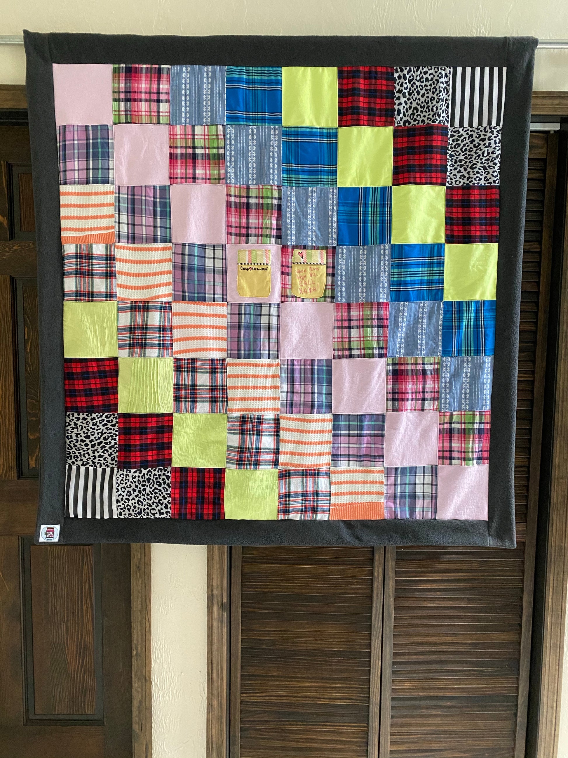 *memory quilt (multiple squares can be cut from one garment so send whatever you want included in your quilt)