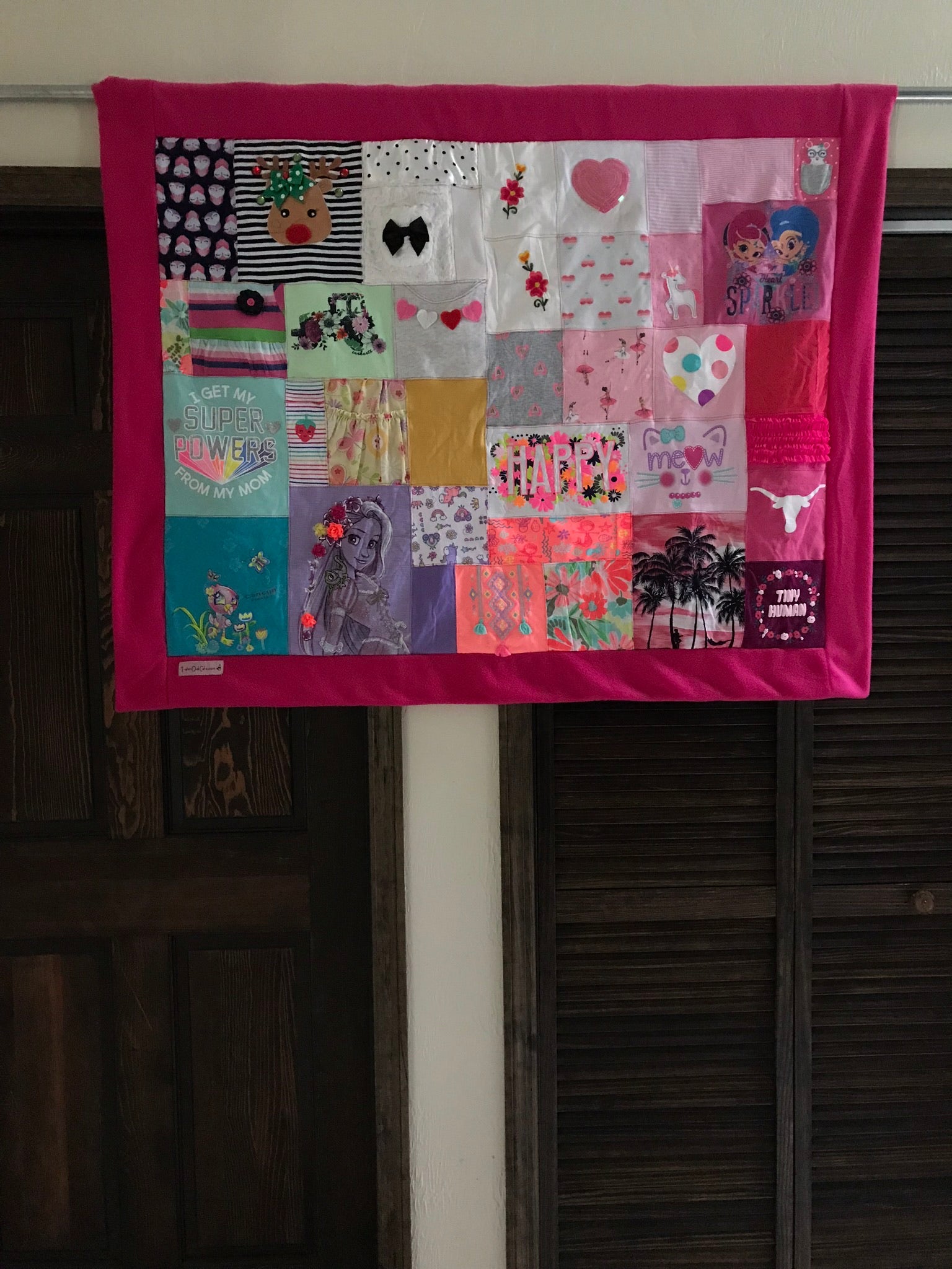 *memory quilt (multiple squares can be cut from one garment so send whatever you want included in your quilt)